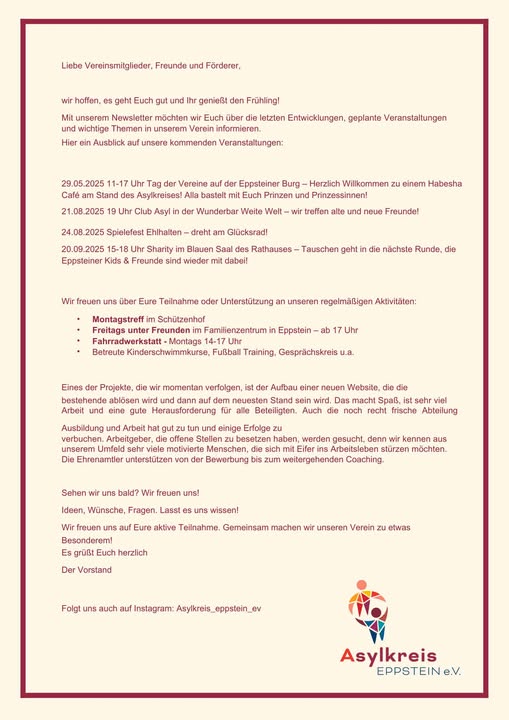 Der Asylkreis Eppstein sagt: Danke für deinen Einsatz. Du bereicherst unseren Kreis.