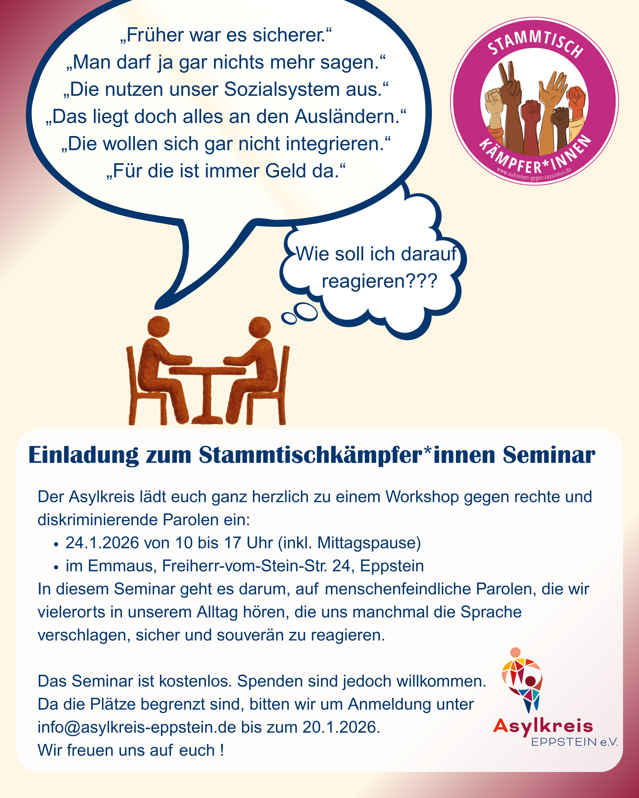 Asylkreis Eppstein e.V., Waldstraße 6, 65817 Eppstein.